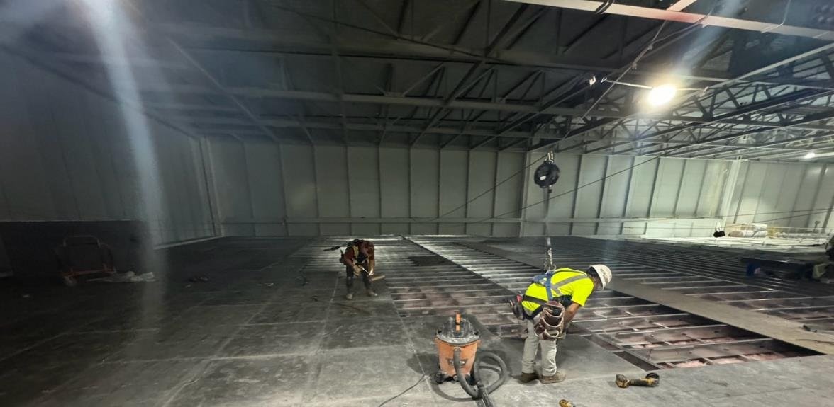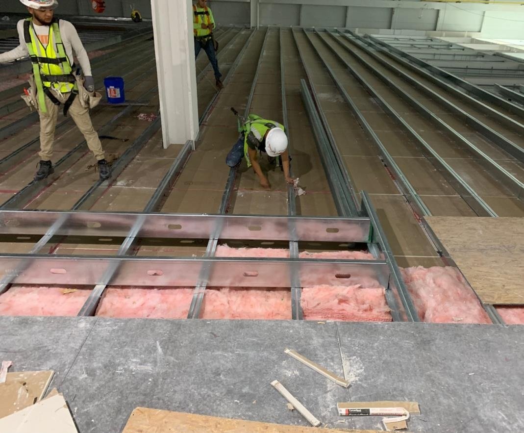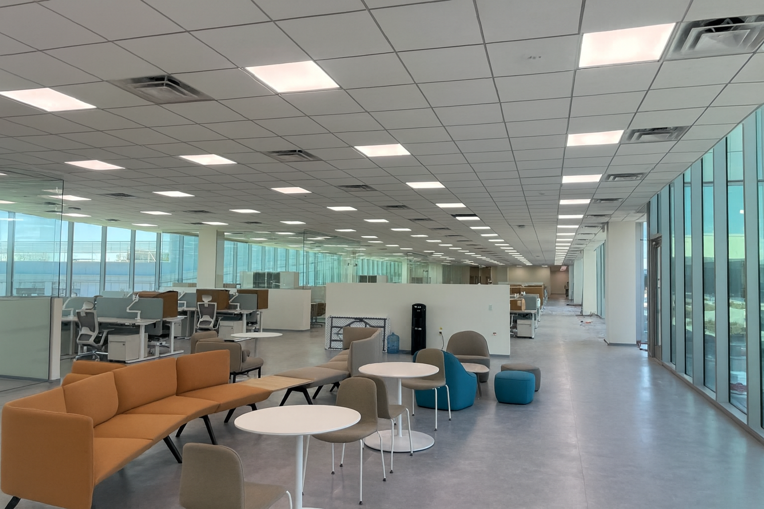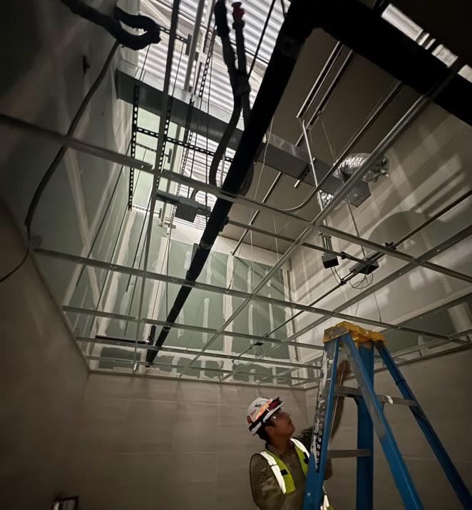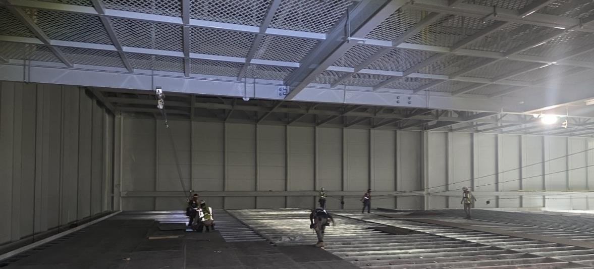 - Installation of modular grid ceilings with integrated lighting and mechanical systems.