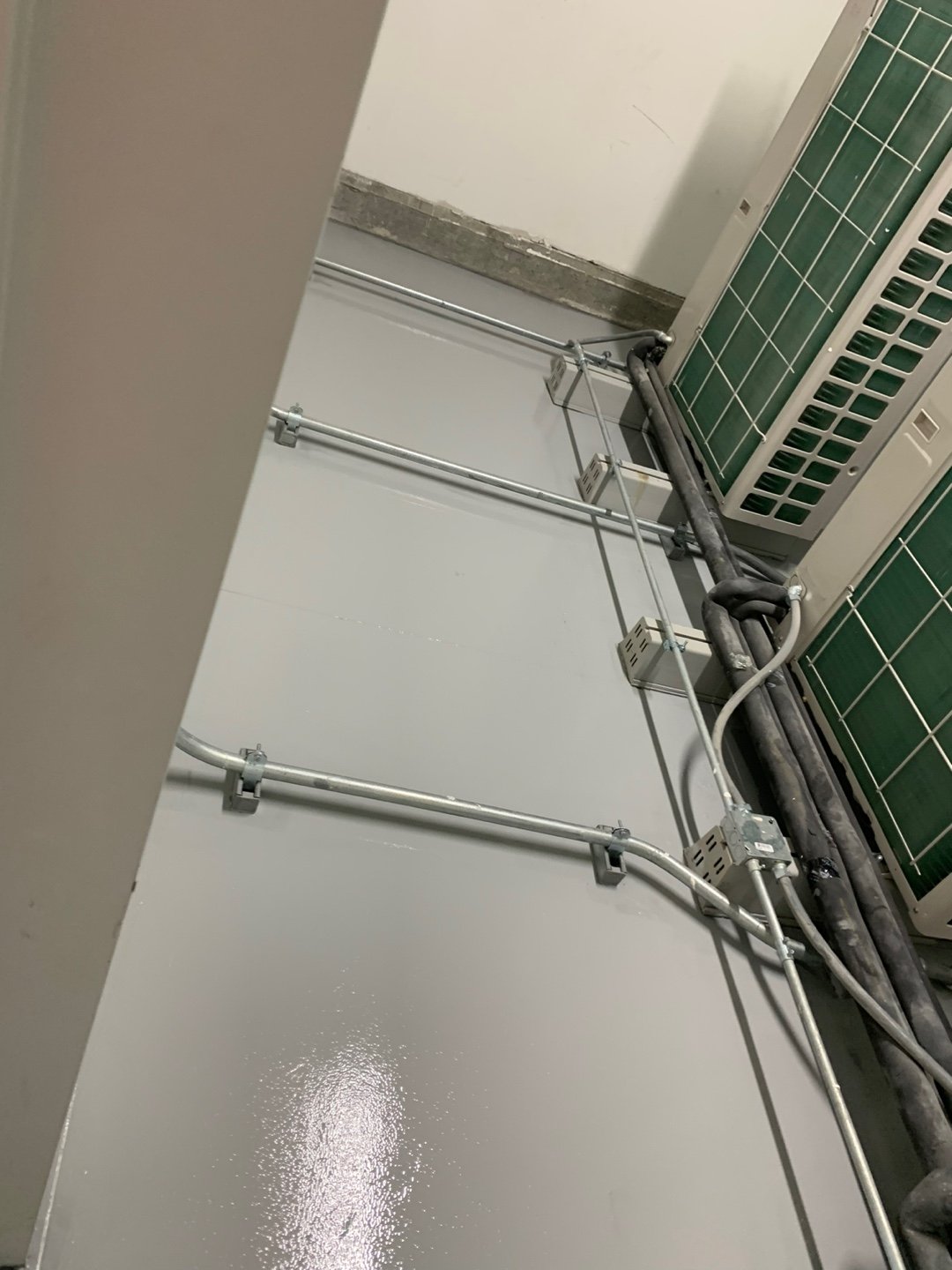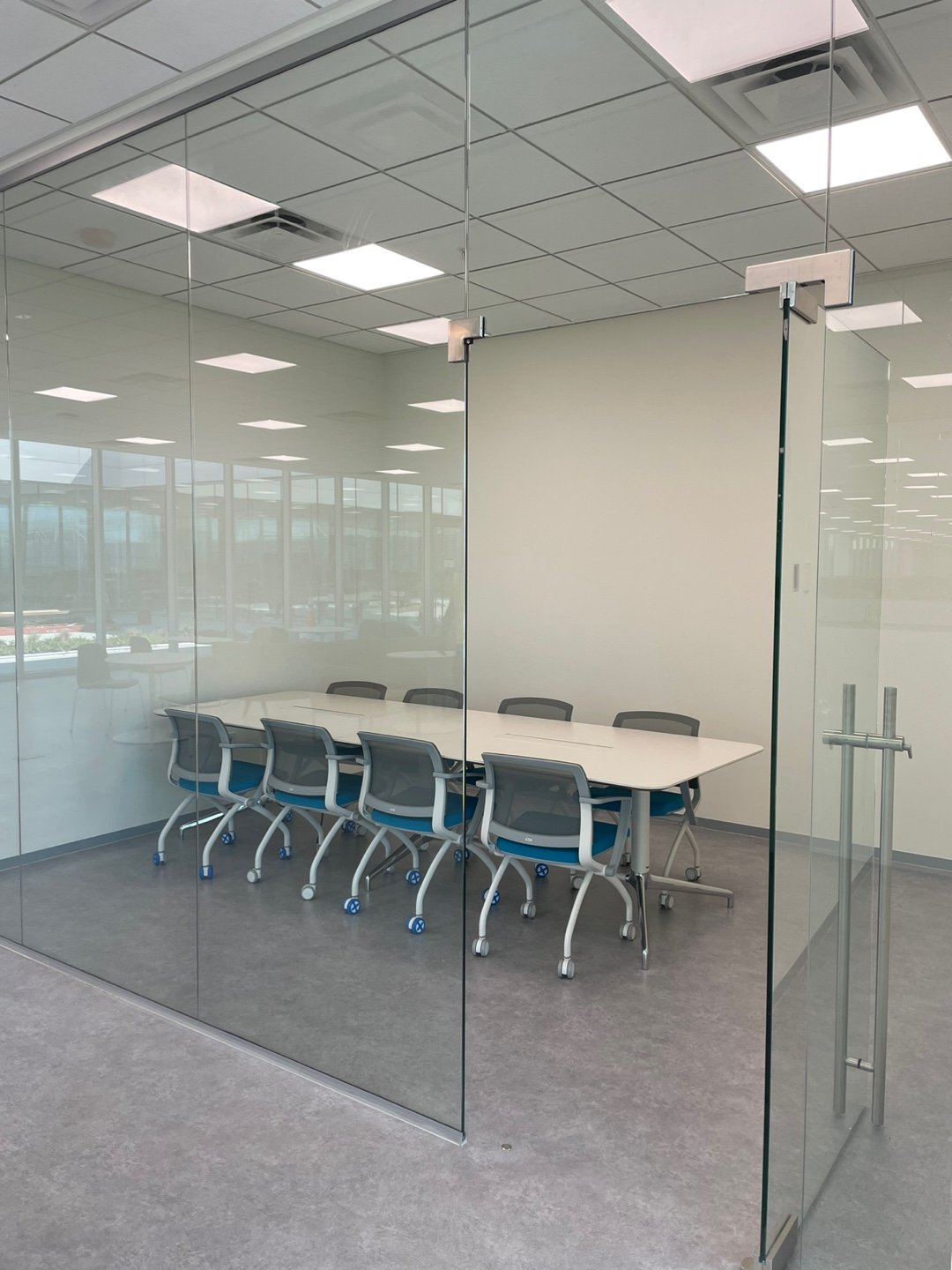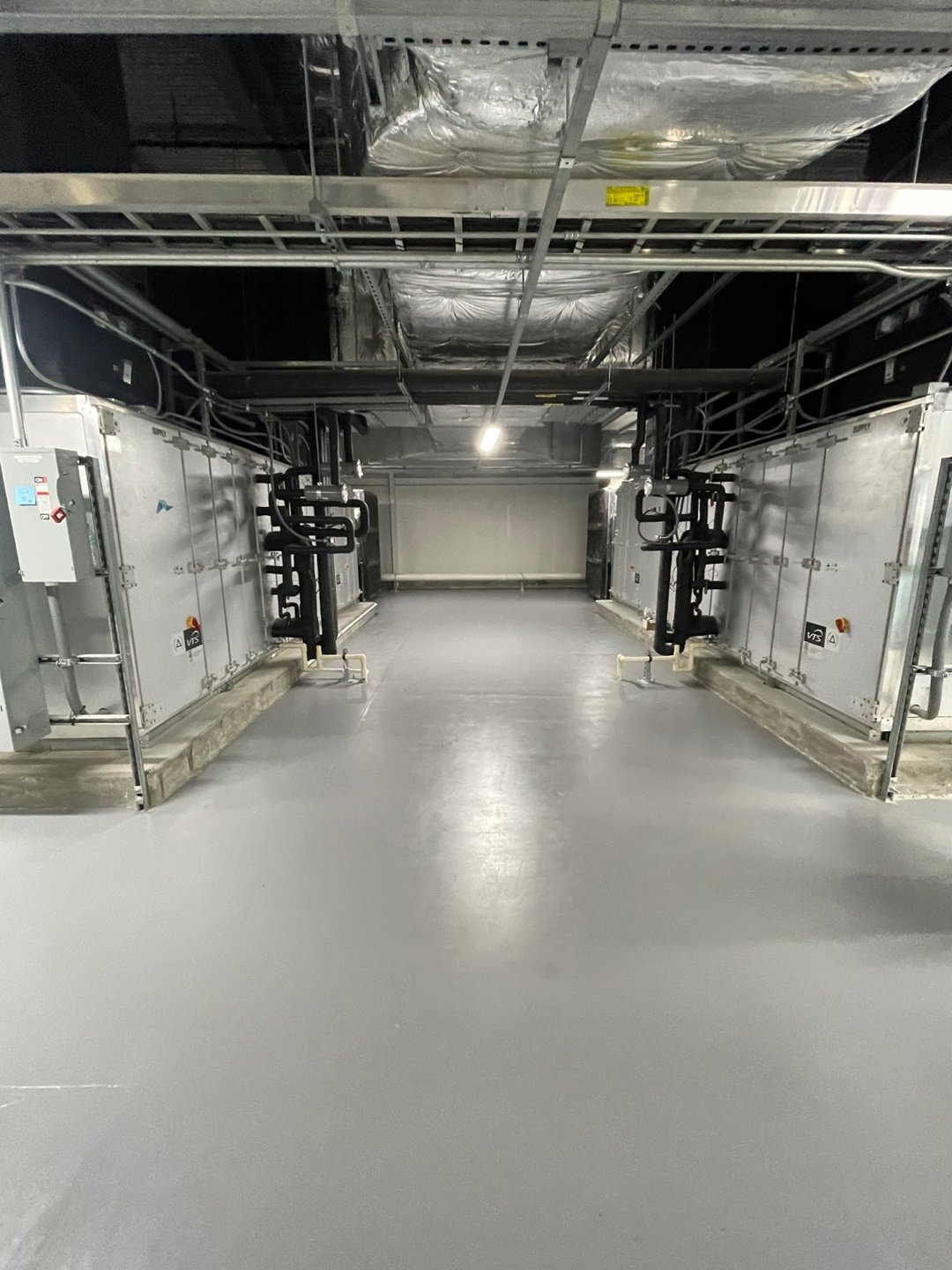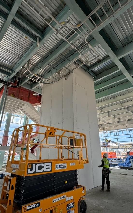 - Installation of modular grid ceilings with integrated lighting and mechanical systems.