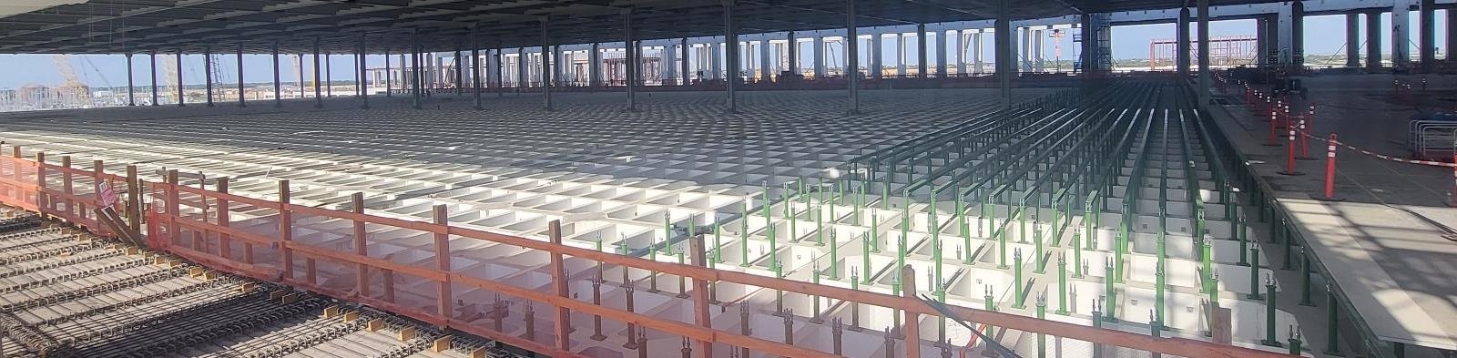 - Installation of 367,200 square feet of sandwich panels at the upper ceiling level of FAB 1